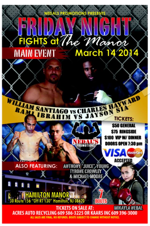 Combate de boxeo en "THE HAMILTON MANOR" 14 de marzo (viernes), a las 7:30 pm